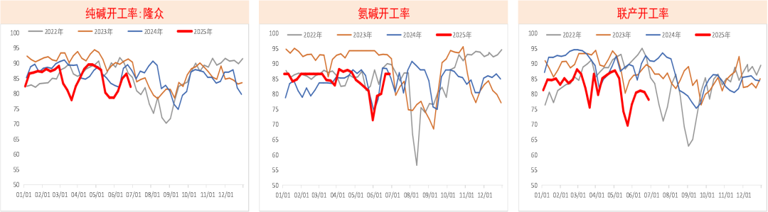 其中,氨碱法开工率和去年持平,联碱法今年82%,去年90%,下降8个百分点。