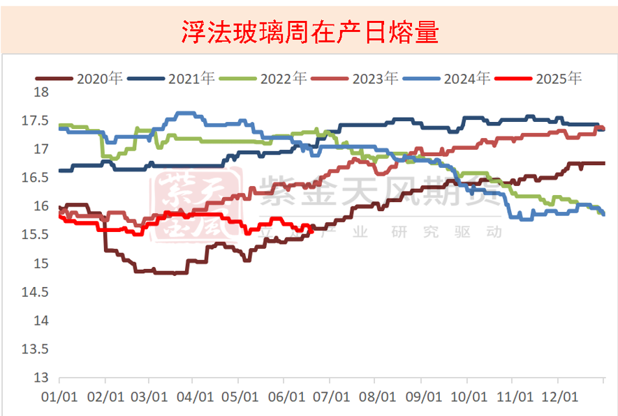 供应:统计局口径1-5月平板玻璃产量同比下降5.2%,隆众和卓创口径1-6月同比都是下降9.7%。去年四季度日熔量16万吨/天,今年一季度15.68万吨/天,二季度15.7万吨/天,虽然玻璃价格从1300元/吨,下跌至1000元/吨,并且亏损面积不断扩大,但是日熔量并没有减。