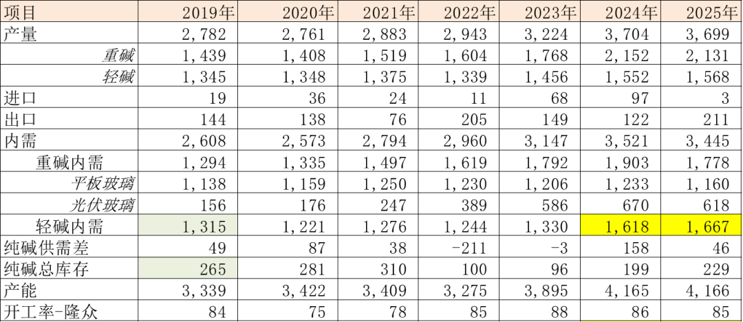 截至目前纯碱内需累计同比降2%,还没有完全体现平板玻璃和光伏玻璃的降幅。