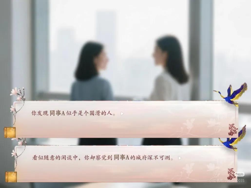 《深宫曲》里,当玩家读到读到“陛下有旨,还请跟奴才走一趟吧”,会意识到有一些突发事件触发了,得赶紧去看看发生了什么 。但当画风变成现实,“陛下有旨”改成“领导有旨”,我们瞬间就感到“压力+10”。